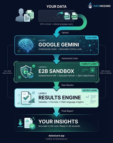 DataWizard solves this with Hybrid AI Architecture: